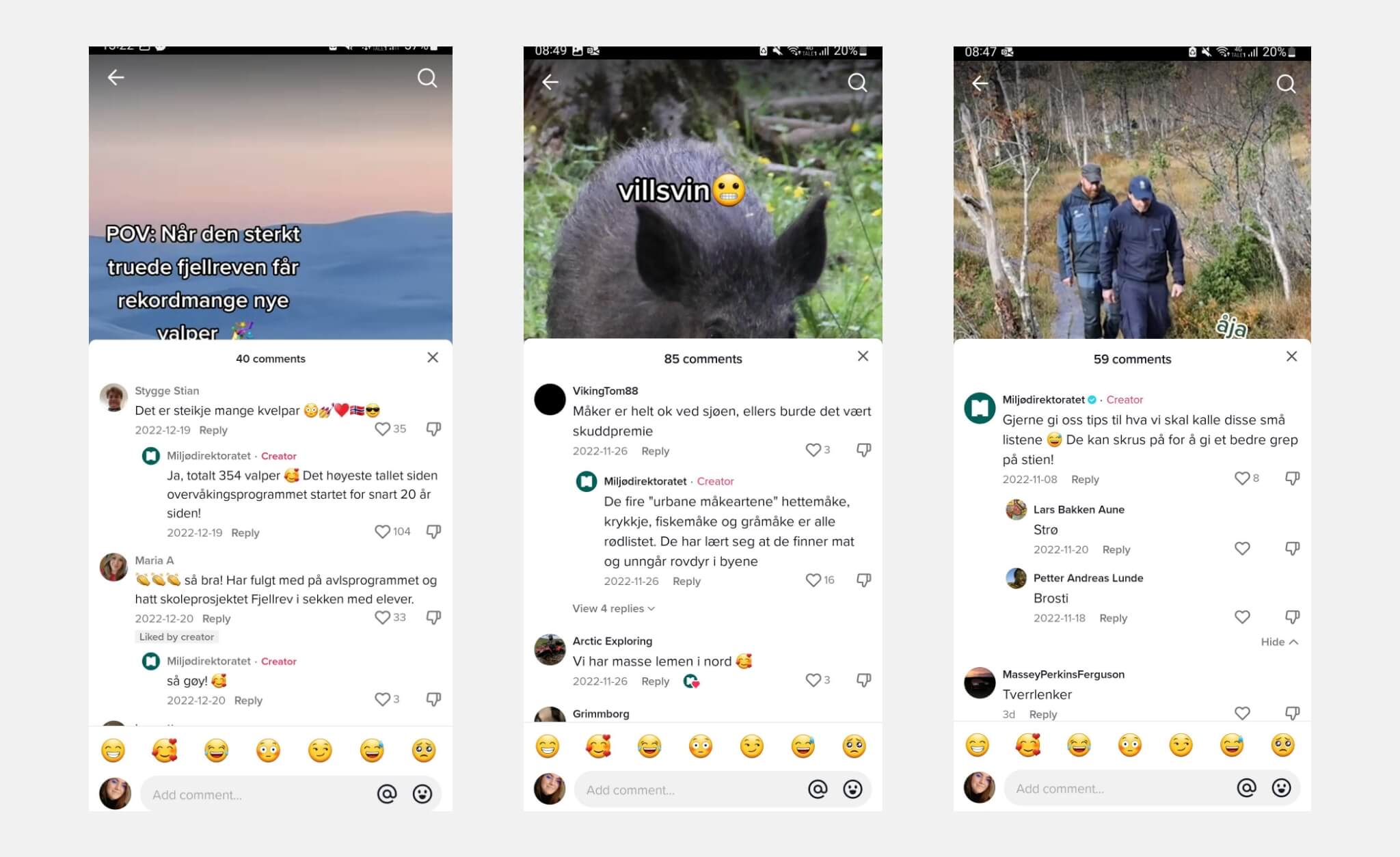 Miljødirektoratet følger aktivt opp kommentarer og aktivitet blant brukerne i sosiale medier.